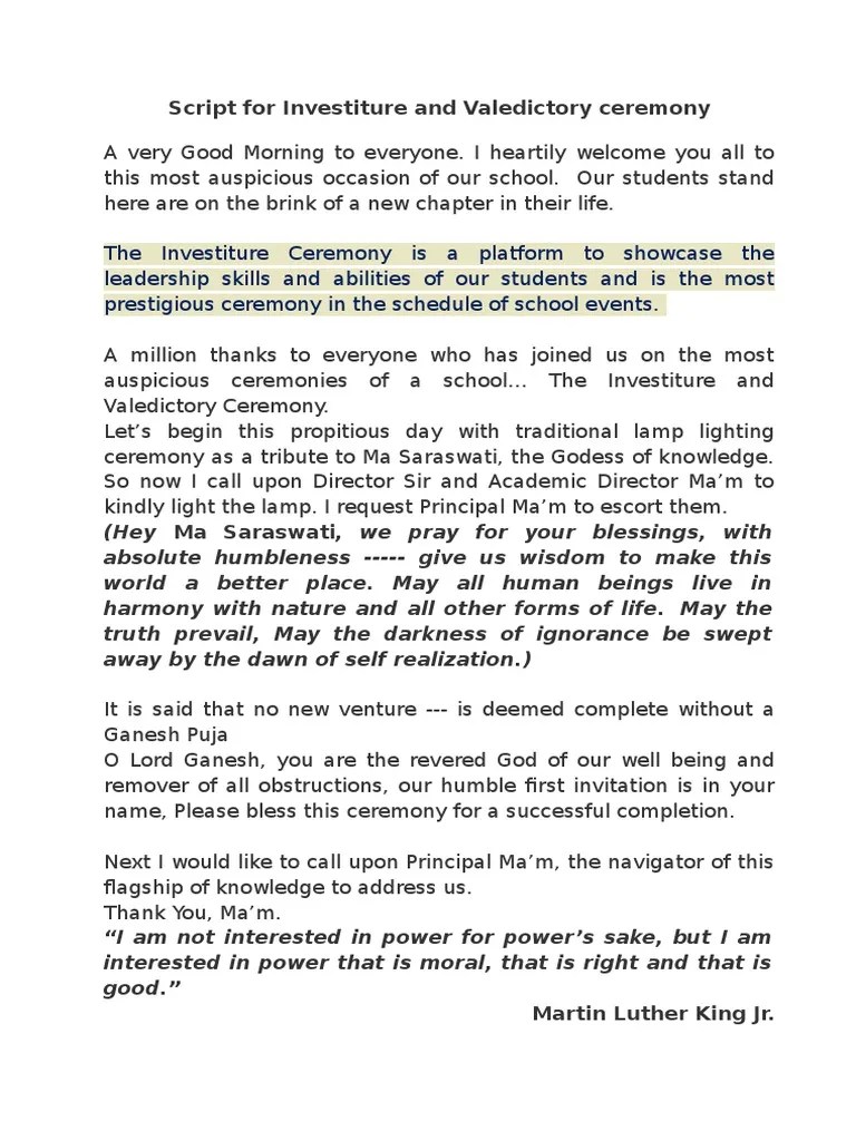 Script For Investiture Cript For Investiture And Valedictory